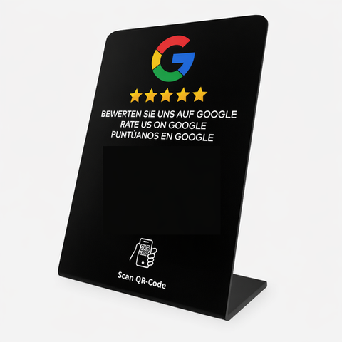 Ausgestattet mit einem QR-Code ermöglichen unsere Review Filter Displays schnell und unkomplizierte Bewertungen.
